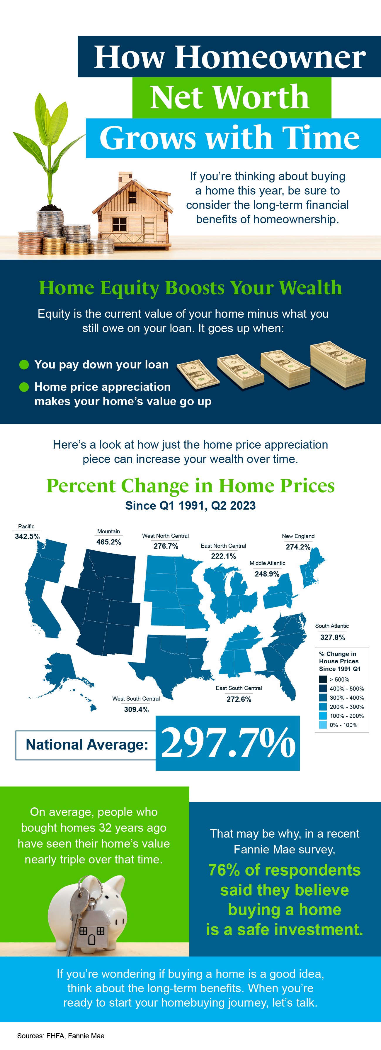 - If you’re thinking about buying a home this year, be sure to consider the long-term financial advantages of homeownership, like home equity.