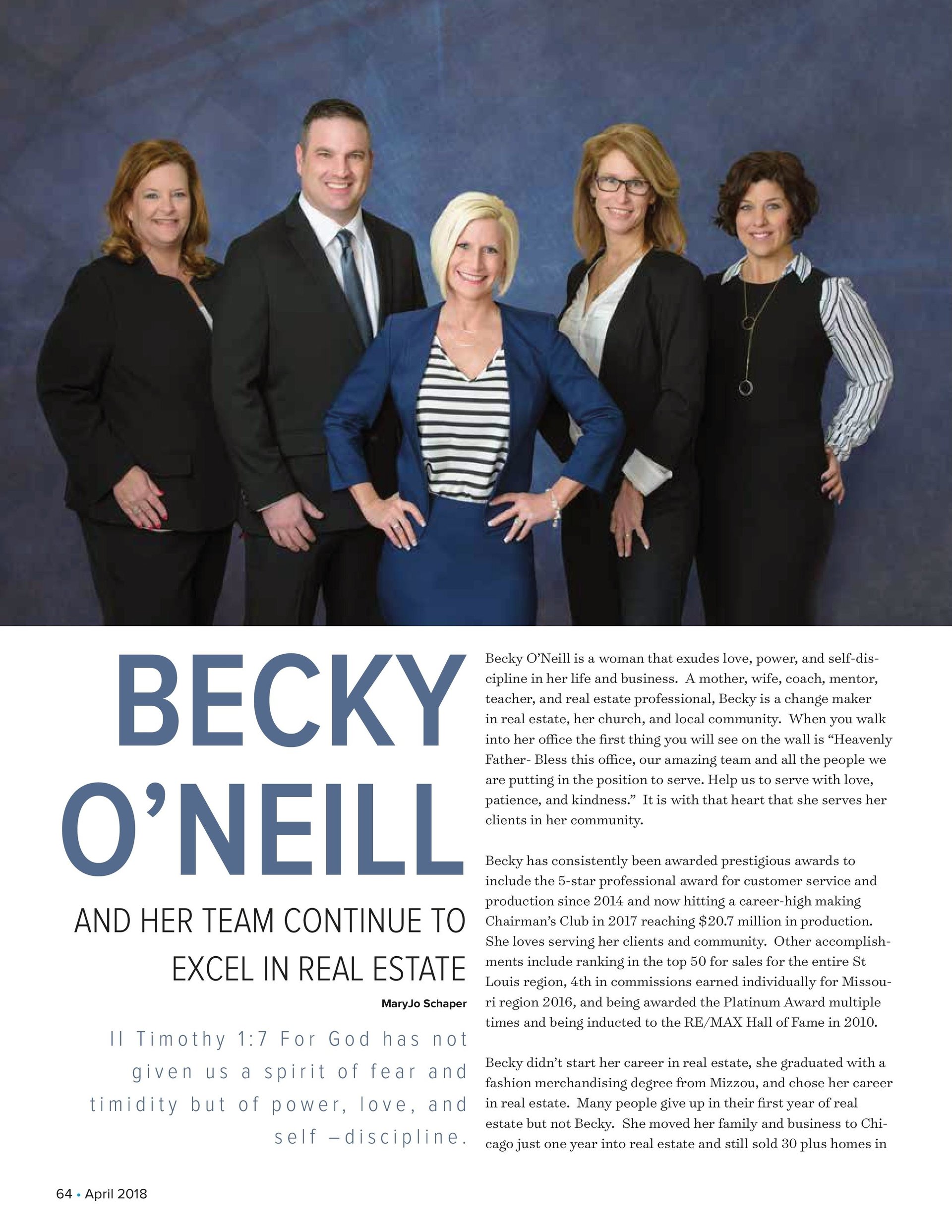 The Becky O’Neill Power Home Selling Team continues to grow because of hard work, passion for what we do, and commitment to our clients. We strive to make every step of the process seamless and easy for all of our buyers and sellers. With our years of combined experience and positive attitude we will get the job done and protect you through it all. If you need a realtor who has your best interest at heart, look no further, call The Becky O’Neill Power Home Selling Team today! Becky can be reached directly at (636) 326-2290 and would love to hear from you!