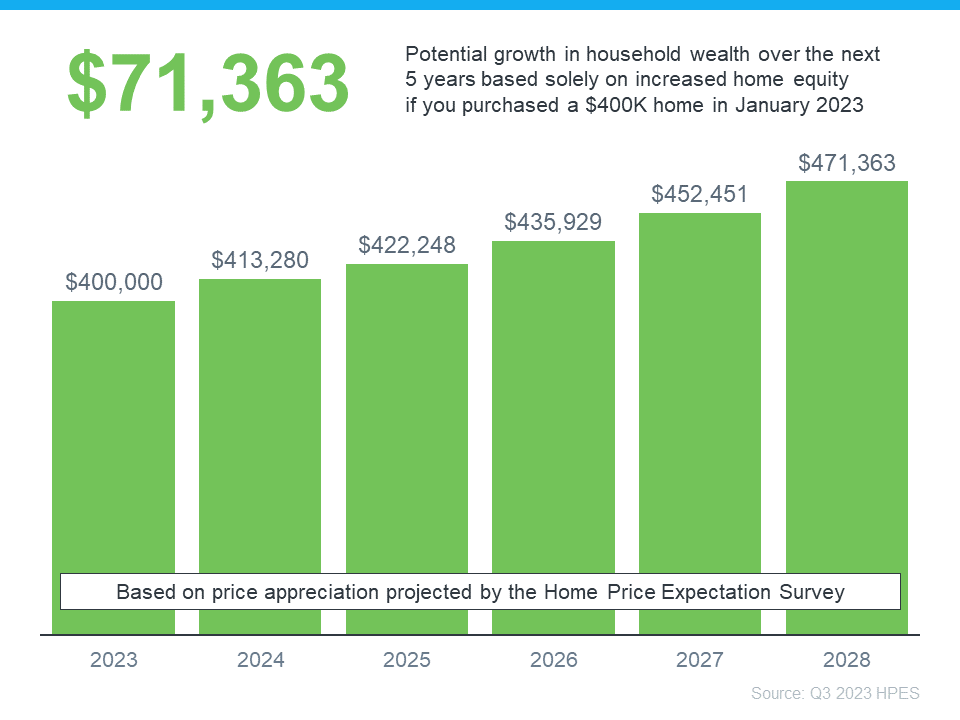 In this example, let’s say you bought a $400,000 home at the beginning of this year. If you factor in the forecast from the HPES, you could potentially accumulate more than $71,000 in household wealth over the next five years.